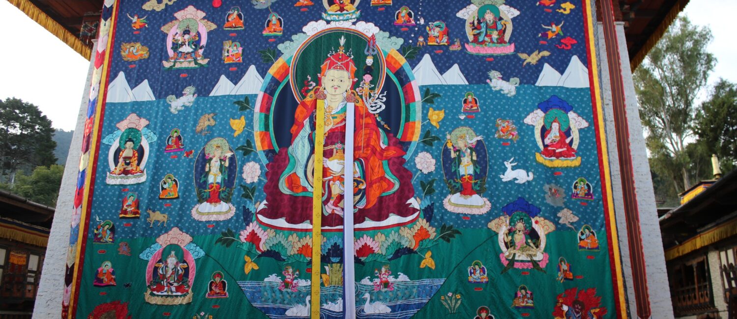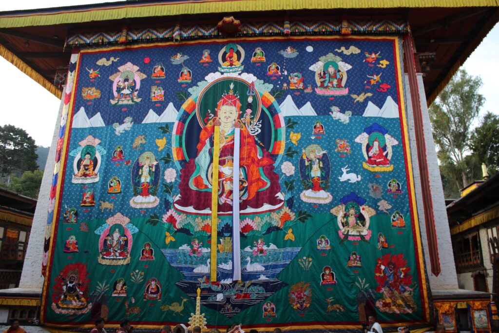 The highlight of the last day of Mongar Tshechu is the unfurling of the Guru Tshengye Thongdrel. The Thongdrel is unfurled as early as four AM and viewing the Thongdrel is believed to cleanse sins and bestow blessings. As is the case every year, thousands thronged to offer prayers and receive blessings from the Thongdrel.